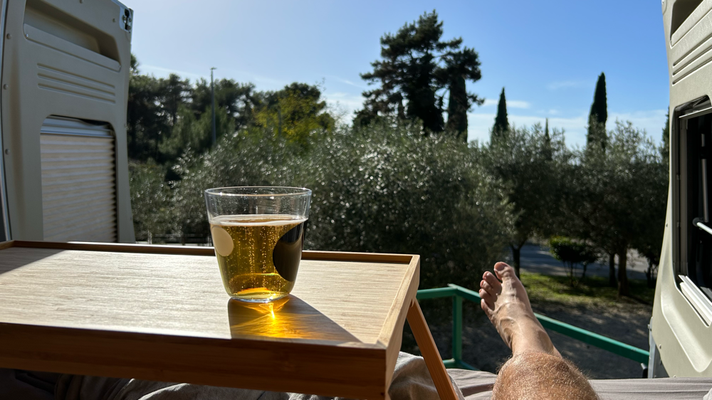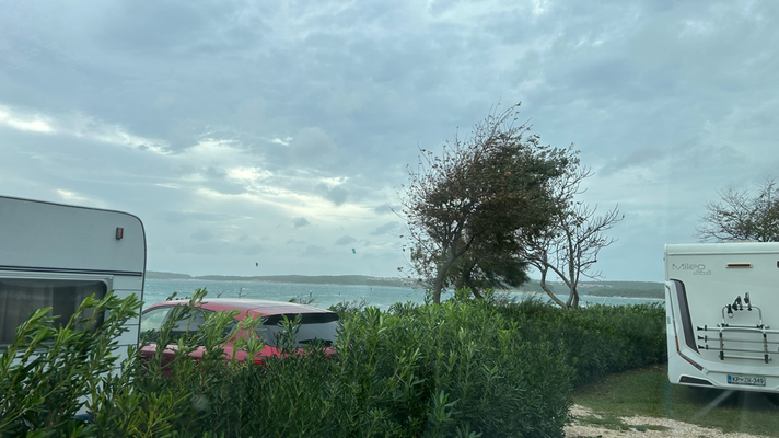 Eine der - oder gar die wildeste Nacht im Camper - Sturm und Starkregen in der Nacht. Am nächsten Tag haben wir dann auf der Halbinsel Premantura die Beine vertreten. Weiter zum Weingut Franc Arman