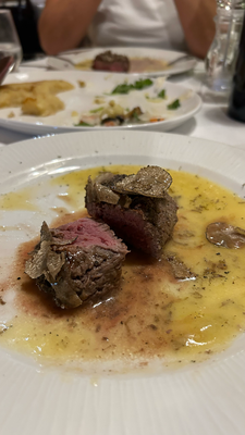 Fröhlich und beschwingtester nach Momjan zum Trüffel-Steak. Nachspeise mit Marillenpalatischnke im Wigerl - gute Nacht…